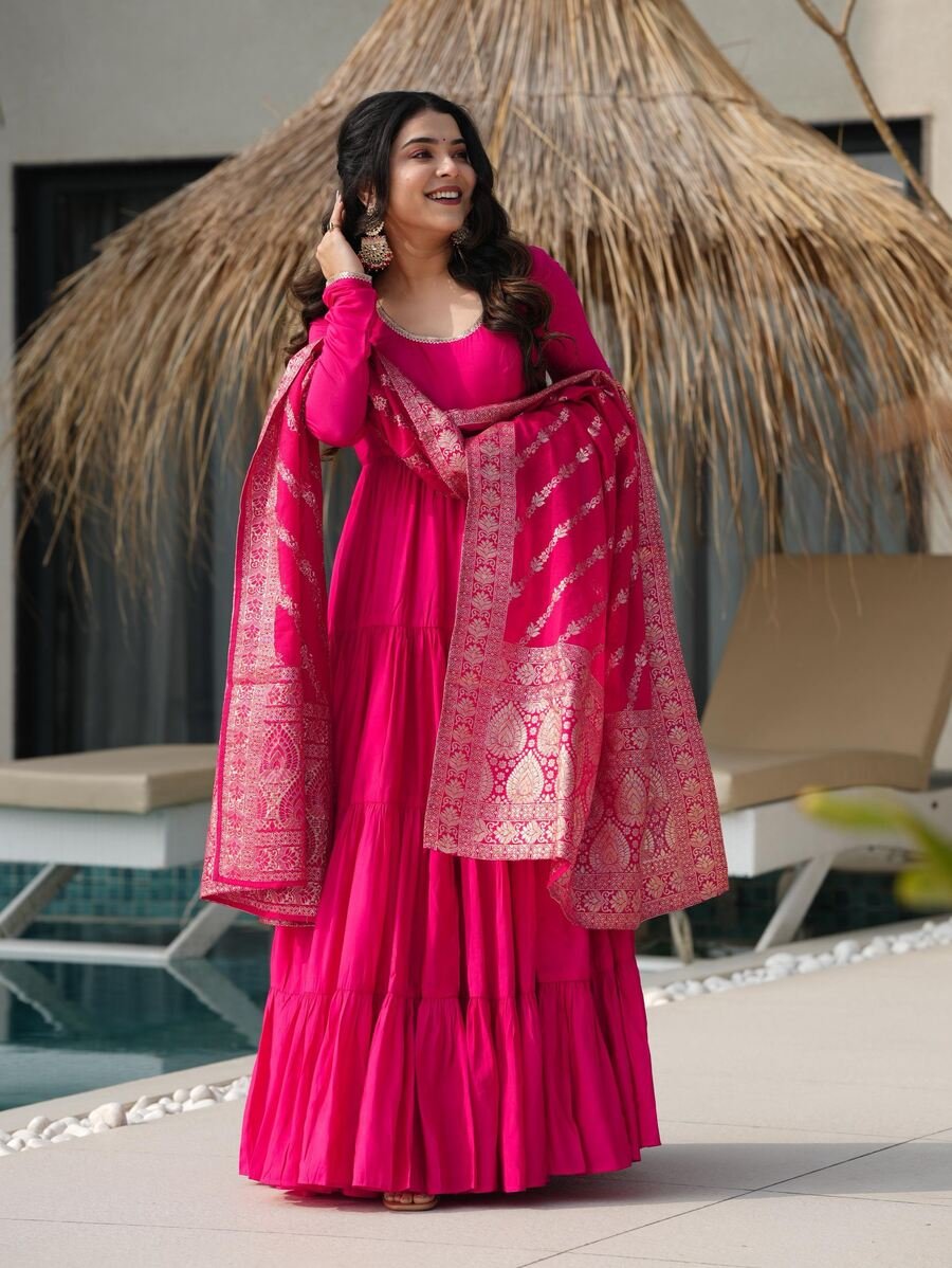 YOKE LACE WORK,FULL CHURIDAR SLEEVES ,PADDED,SIDE ZIPPER,FOUR LAYER GATHERING