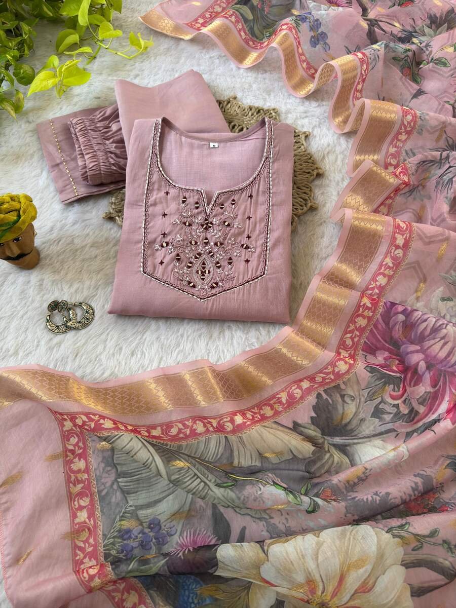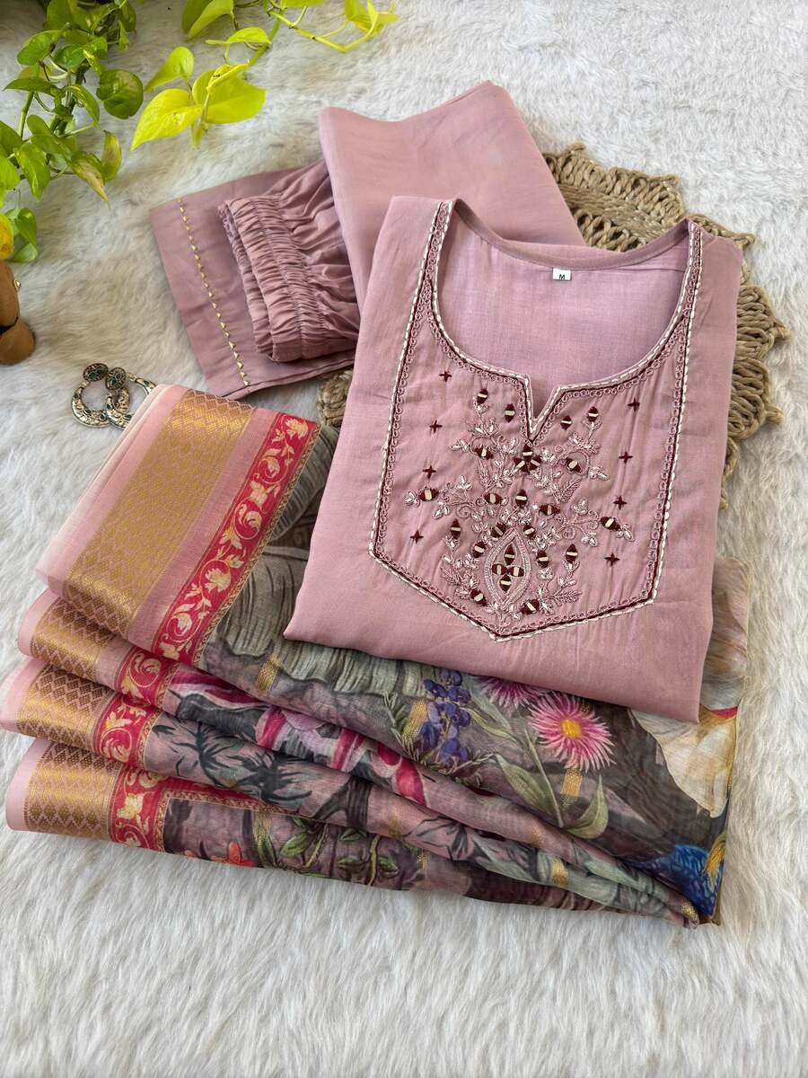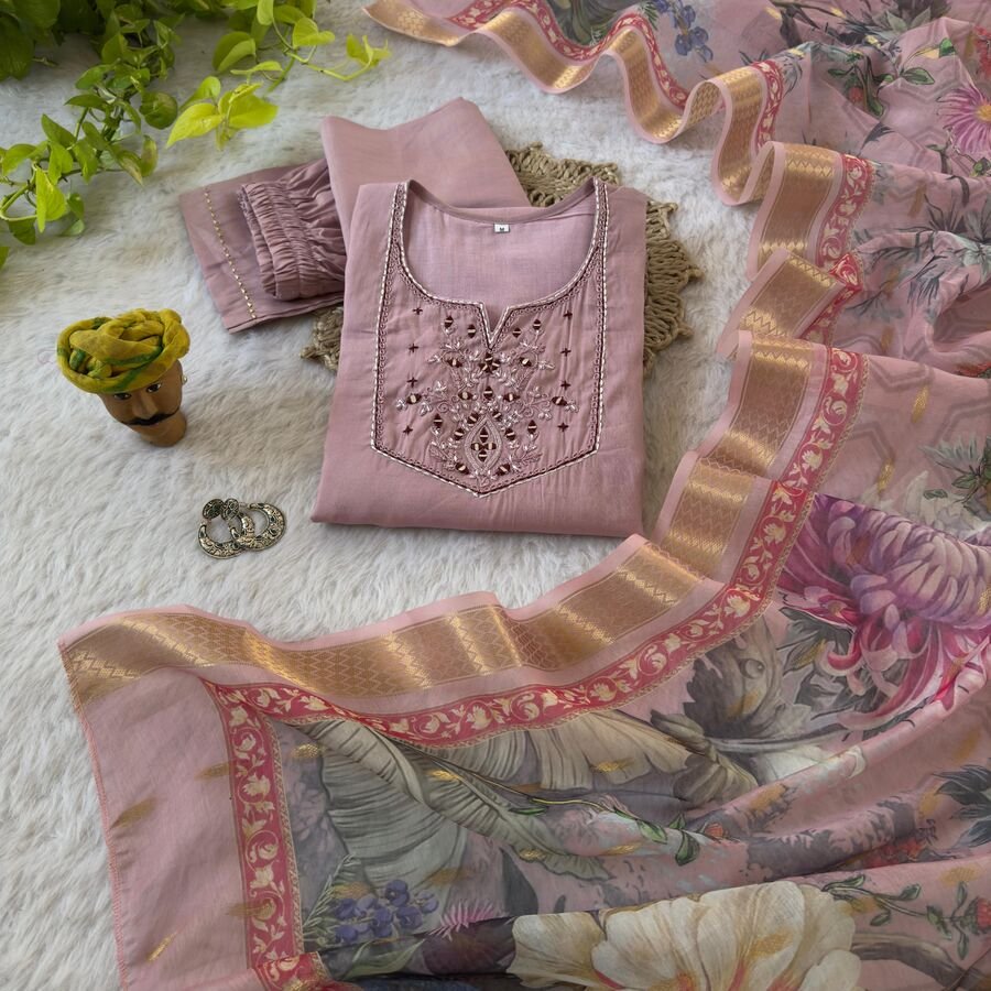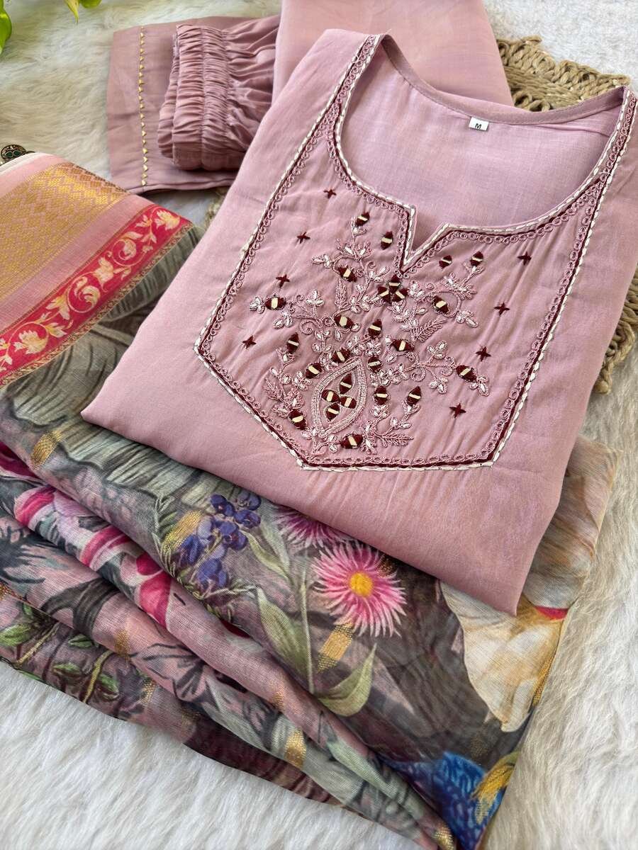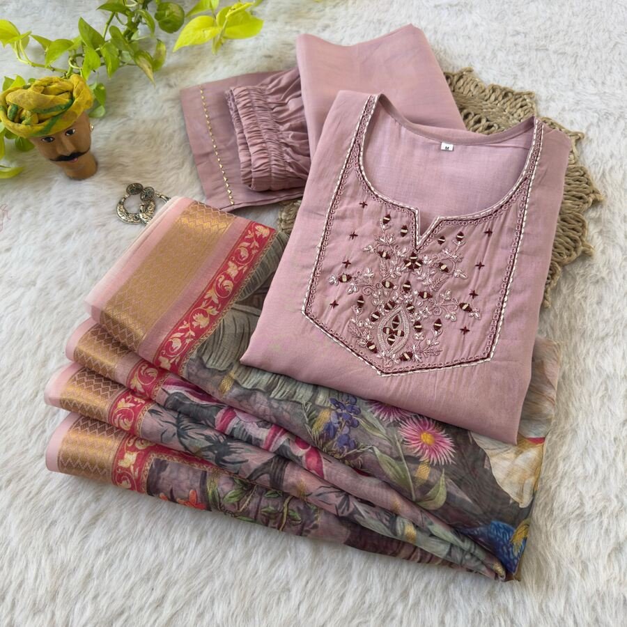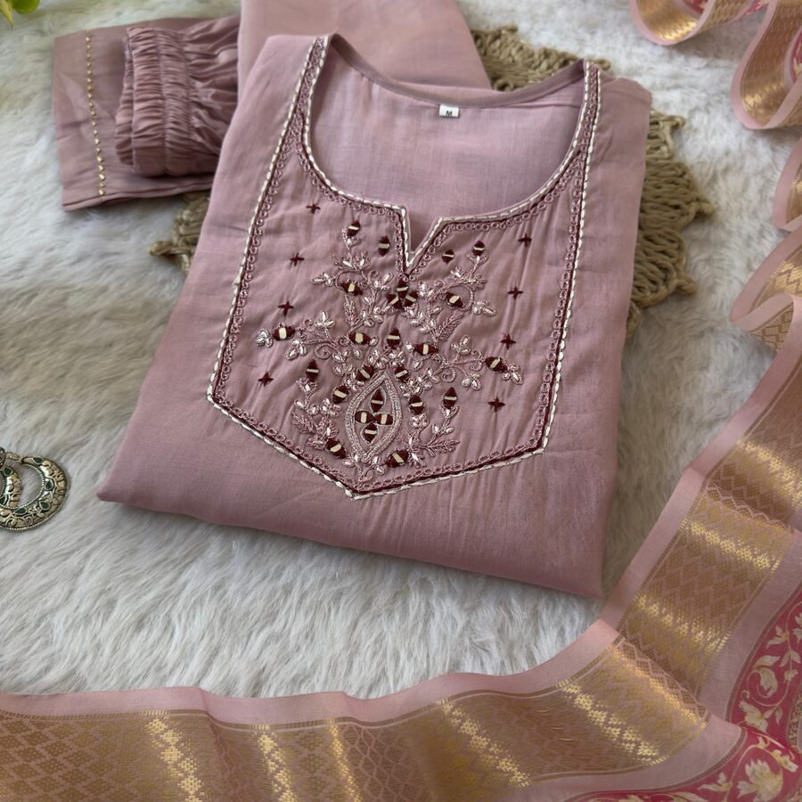 TOP FABRIC :- ROMAN SILK WITH HANDWORK NECK