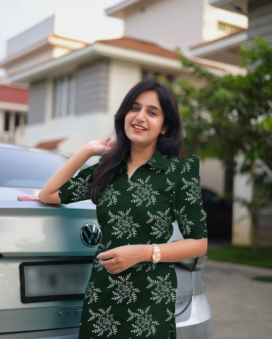 TRENDING SOFT COTTON PRINTED ONLY KURTI GREEN