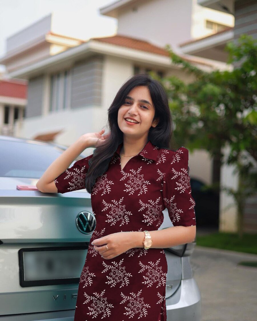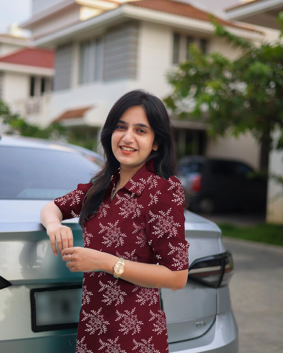 TRENDING SOFT COTTON PRINTED ONLY KURTI MAROON MAROON