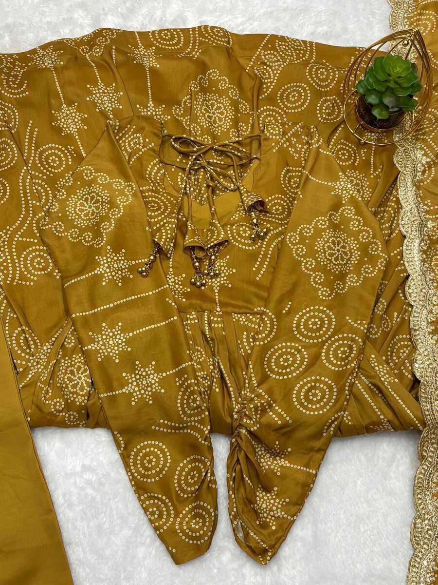 FABRIC : SOFT MUSLIN BANDHEJ PRINT BOADER EMBROIDERY WORK