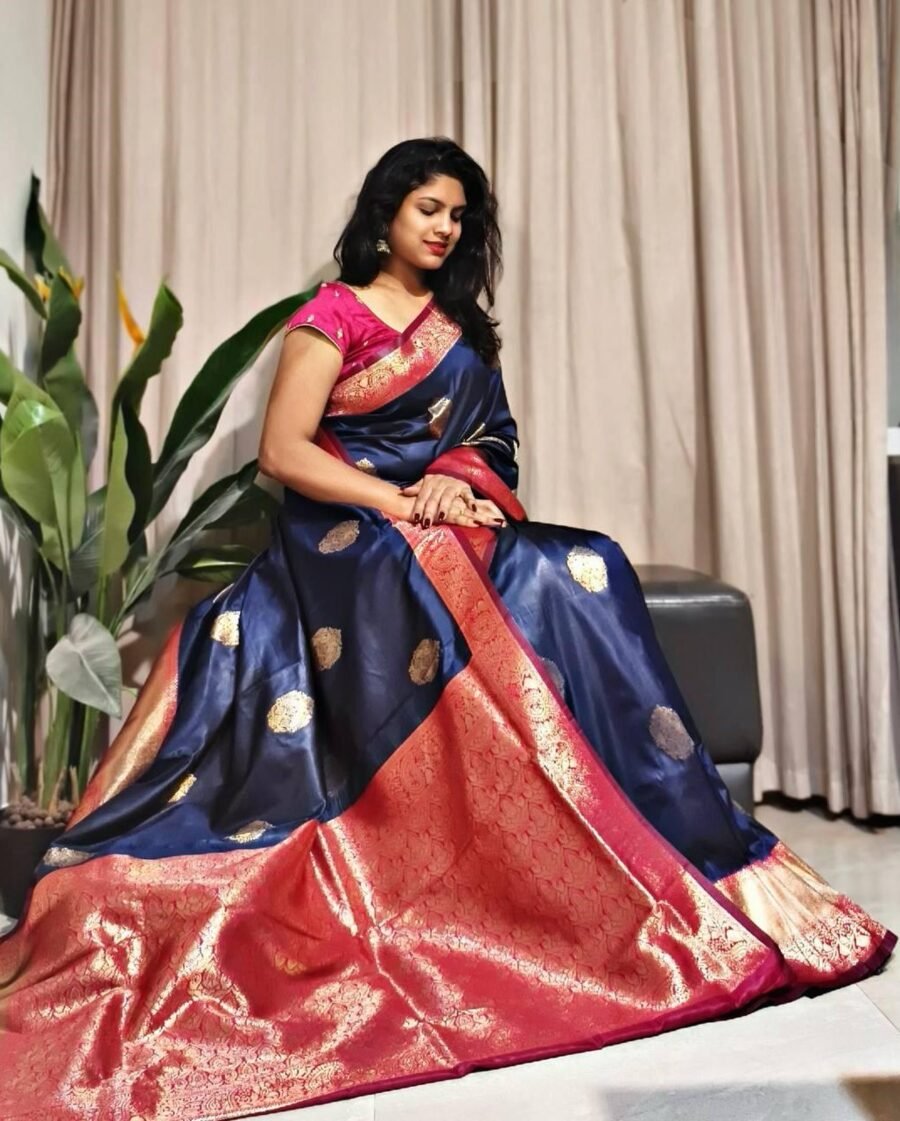 TRENDING SOFT SILK ZARI WEAVING WORK SAREE WITH UNSTITCHED BLOUSE NAVY BLUE