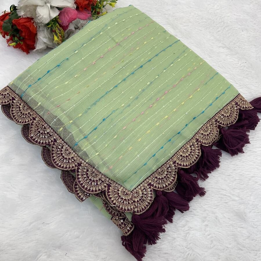 SAREE FABRIC :- TISSUE NET WITH EMBROIDERY LACE BORDER SAREE WITH CONTRAST BLOUSE