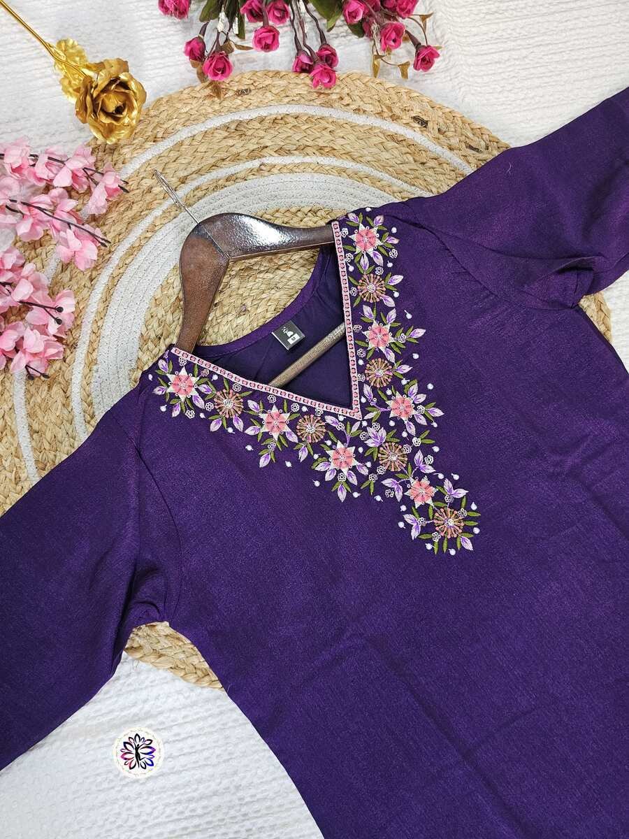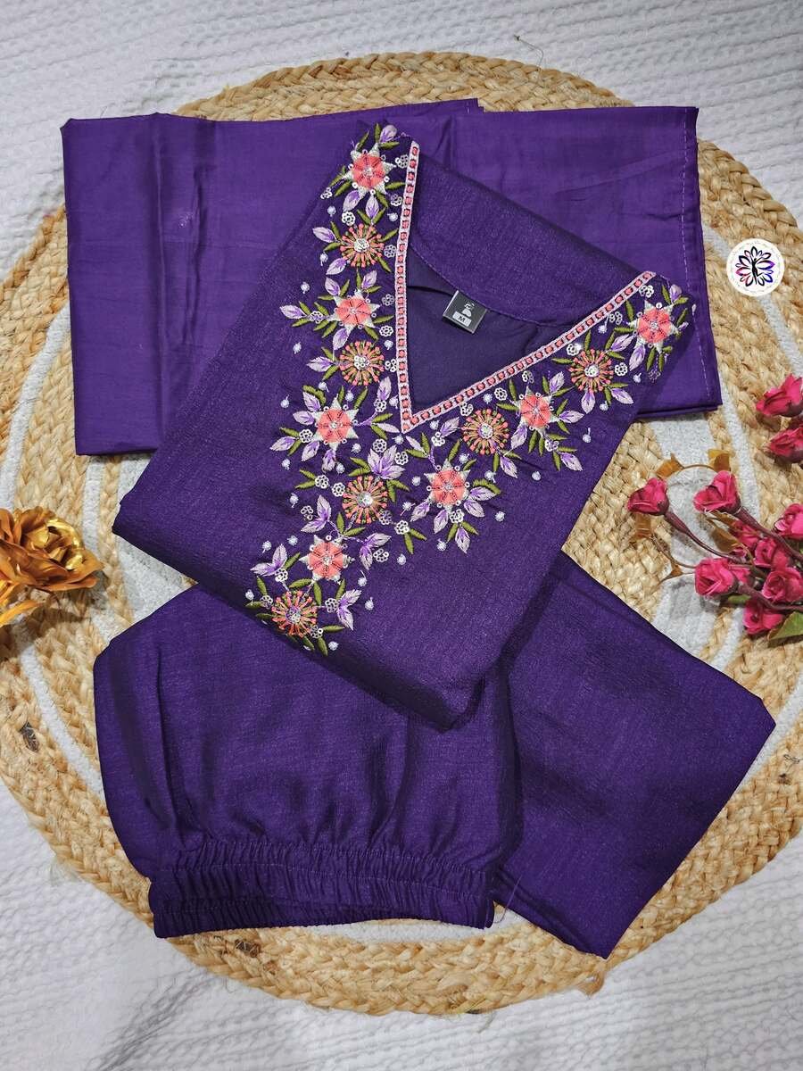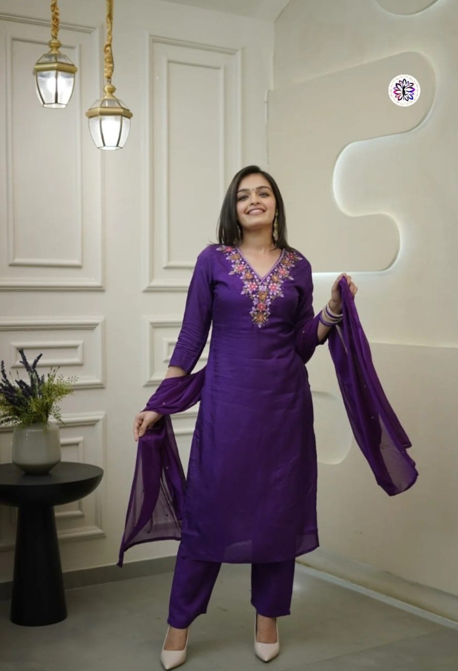 TRENDING VICHITRA SILK EMBROIDERY SEQUENCE WORK TOP BOTTOM WITH DUPATTA PURPLE
