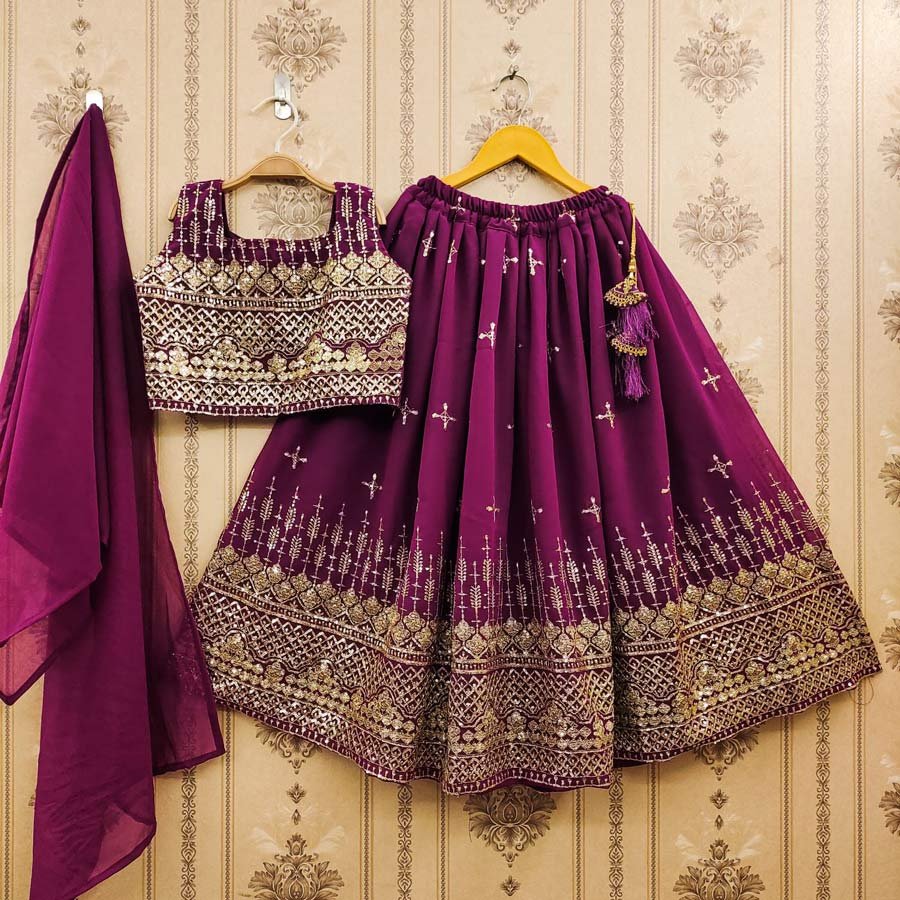LEHENGA FABRIC:- BLOOMING GEORGETTE WITH BEAUTIFUL SEQUENCE EMBROIDERED WORK & DESIGN ON BLOOMING GEORGETTE FABRIC