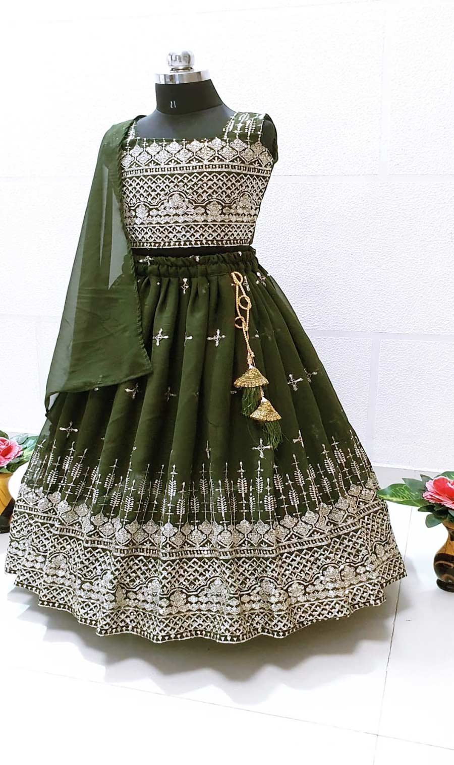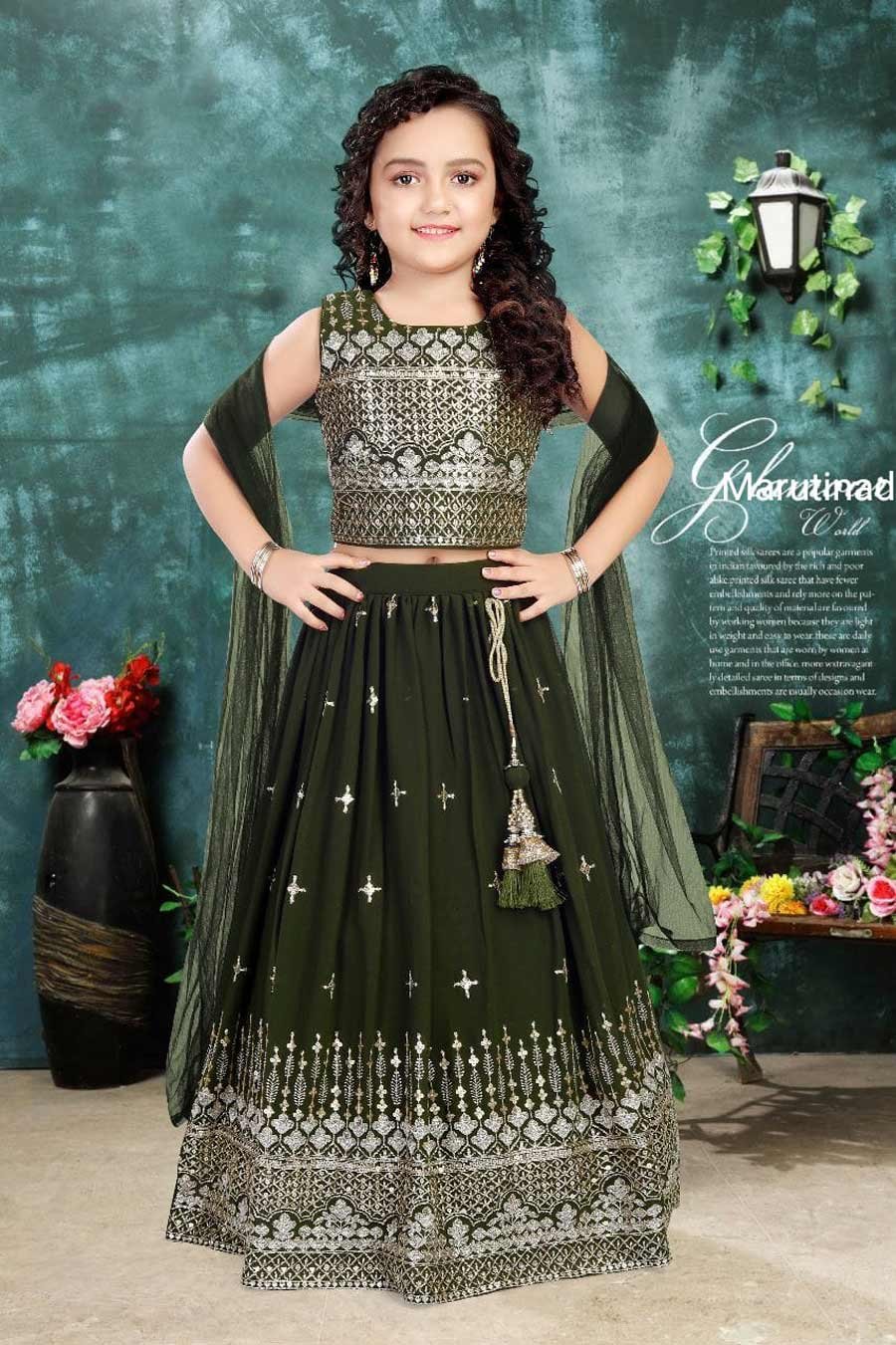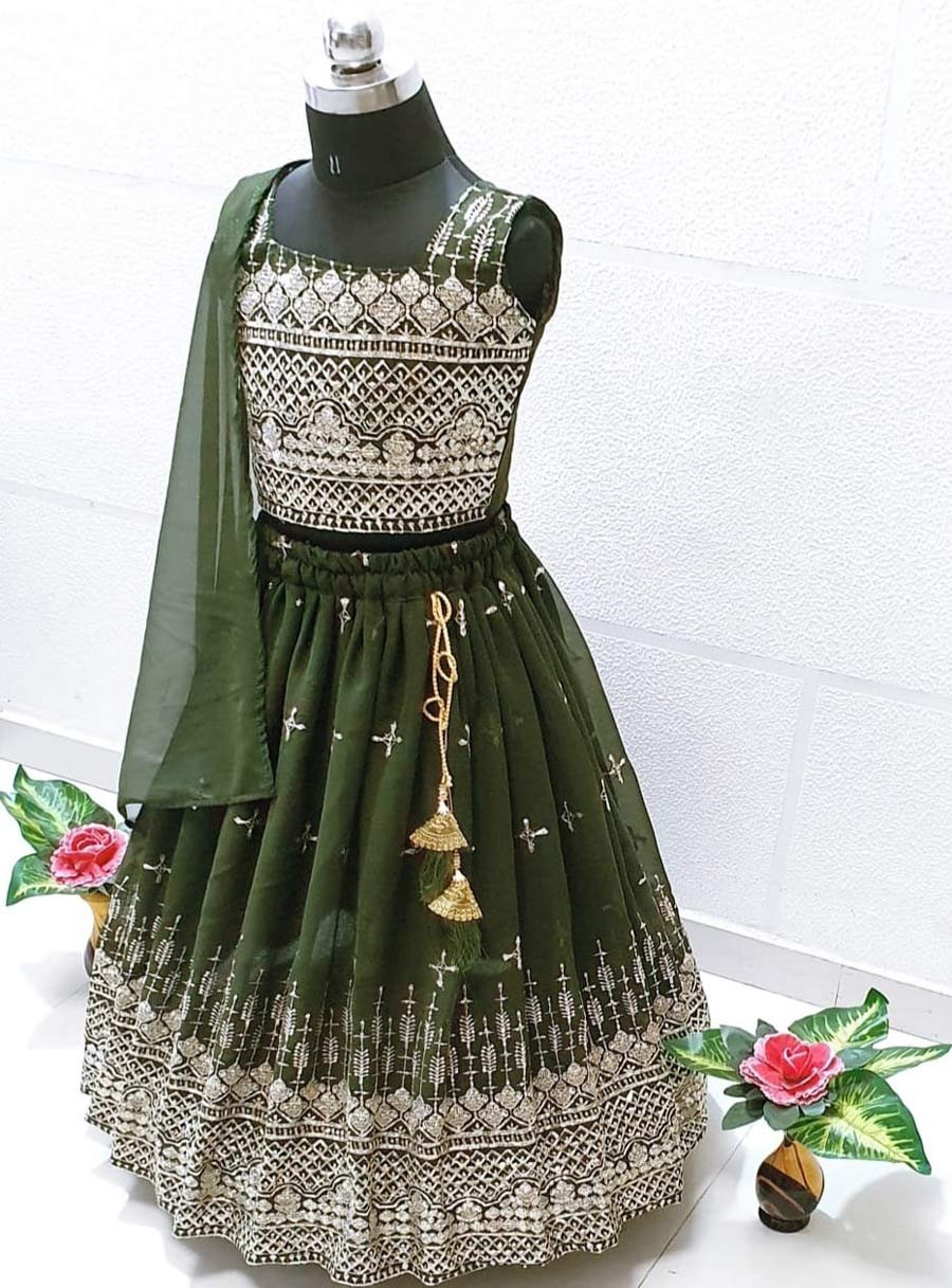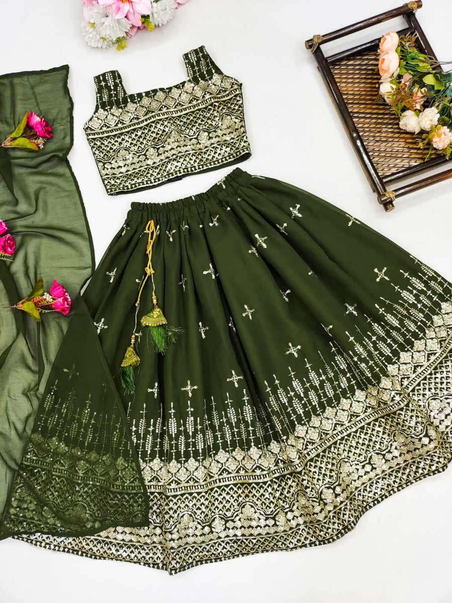 WEDDING WEAR KID WEAR EMBROIDERY WOTK LEHENGA CHOLI WITH DUPATTA GREEN